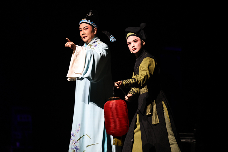 《何文秀》作為越劇傳統(tǒng)劇目,源自明傳奇《何文秀玉釵記》。劇情講述了明嘉靖年間,書生何文秀偕妻王蘭英進京赴考,途中遭遇惡霸張?zhí)玫姆N種迫害,最終憑借機智與正義的力量沉冤昭雪的故事。演出開始,由戲劇梅花獎得主、國家一級演員趙志剛飾演的江南儒生何文秀攜妻王蘭英進京赴考。舞臺上的趙志剛一甩袖、一抬步、一眼神、一拖腔,將一介書生的春風得意、瀟灑倜儻演繹得淋漓盡致。而上海白玉蘭戲劇獎得主、國家一級演員陳湜飾演的王蘭英,不僅唱腔甜美,表演更是飄逸靈動,為觀眾呈現了一個立體豐滿的人物形象。復刻版《何文秀》在保留原有亮點基礎上進行了創(chuàng)新,舞美設計運用現代科技,視覺效果更加震撼。此外,劇中還加大了王蘭英的戲份,使其與何文秀共同成為劇情的雙核心,人物關系更加豐富。