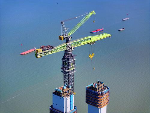 世界最大跨度橋梁張靖皋長江大橋南航道橋南主塔高度接近200米