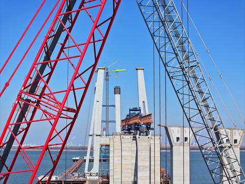 世界最大跨度橋梁張靖皋長(zhǎng)江大橋南航道橋南主塔高度接近200米