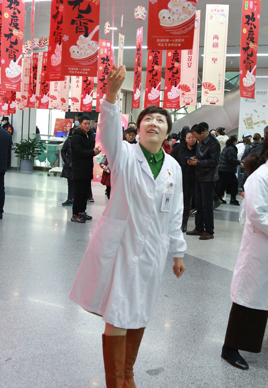發(fā)布時間:2025-02-12 編輯:王婷 來源:視覺南通網(wǎng)12日上午,南通市第一人民醫(yī)院門診大廳內(nèi)張燈結(jié)彩,熱鬧非凡,一場以“‘醫(yī)’心相伴,喜樂元宵”為主題的活動在此歡樂上演。醫(yī)院職工、患者及其家屬積極參與,現(xiàn)場滿是歡聲笑語,濃厚的節(jié)日氛圍撲面而來。