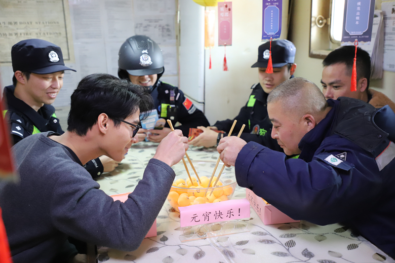 為了讓在海上漂泊的船員們,也能感受到傳統(tǒng)佳節(jié)的氛圍,2月12日下午,南通出入境邊防檢查站聯(lián)合長航公安登上停靠在王子碼頭的伯利茲籍“秀?!陛啠c船員一起慶祝元宵佳節(jié)。