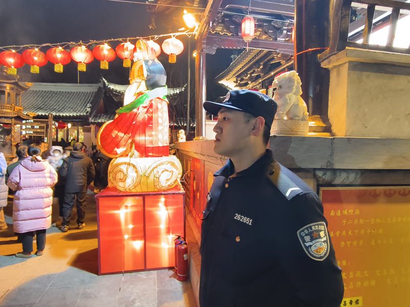 城隍廟元宵活動現場,民警點亮“平安燈”