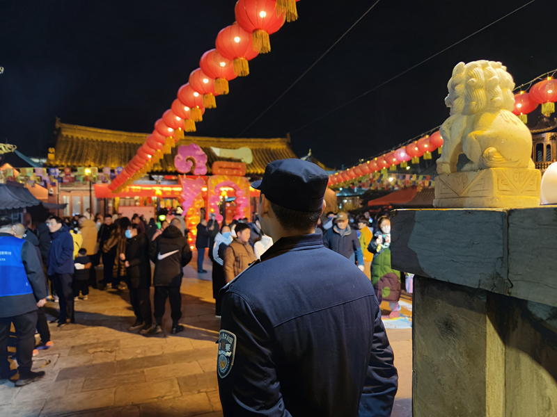 城隍廟元宵活動(dòng)現(xiàn)場(chǎng),民警點(diǎn)亮“平安燈”