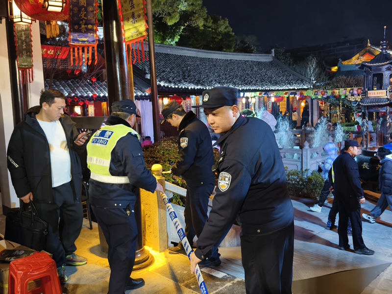 城隍廟元宵活動(dòng)現(xiàn)場(chǎng),民警點(diǎn)亮“平安燈”