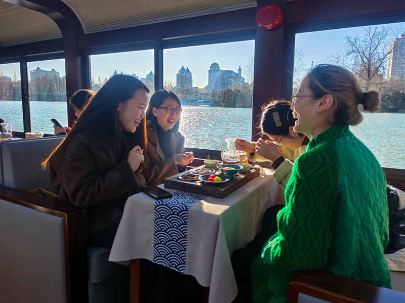 發(fā)布時間:2025-02-18 編輯:王婷 來源:視覺南通網(wǎng)為了更好地契合游客的需求,船上的茶點有許多種類?!拔覀儨蕚淞怂膶m格和六宮格兩種套餐。游客也可以預訂六宮格的茶歇,以滿足更多人的用餐需要?!睆埦昃旮嬖V記者,在訂船時會詢問游客的需求,然后根據(jù)需求,結(jié)合時令季節(jié)去調(diào)整餐點。