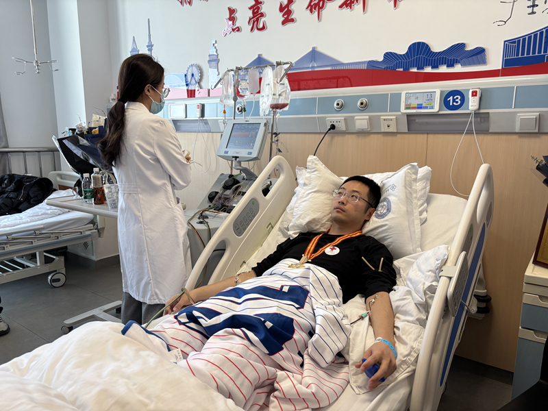 當天中午,通州區(qū)供電公司員工張偉杰也來現(xiàn)場看望馮野牧,就在上個星期,他剛剛完成了捐獻前的體檢,根據(jù)紅十字會的安排,他將在3月“接力”進行造血干細胞捐獻。