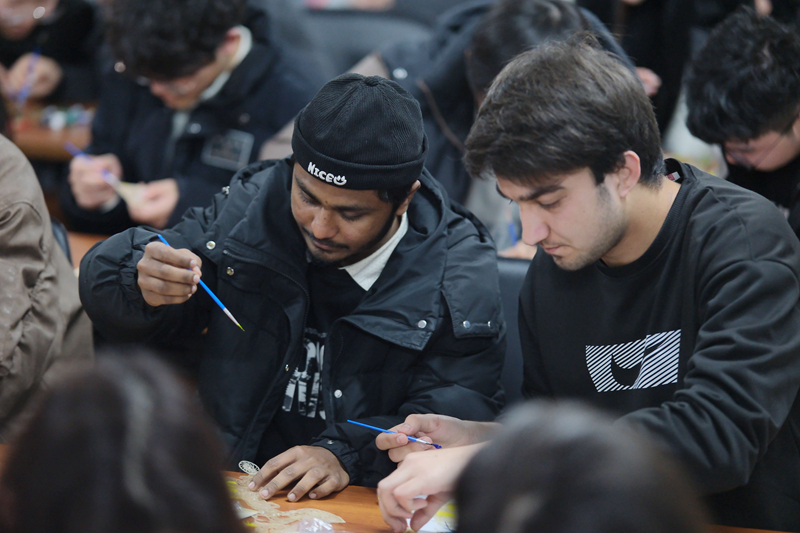 發(fā)布時(shí)間:2025-02-20 編輯:王婷 來源:視覺南通網(wǎng)皮影戲是中國古老的民間藝術(shù)形式,集繪畫、雕刻、表演、音樂等多種藝術(shù)于一體,被譽(yù)為“電影的鼻祖”。活動(dòng)現(xiàn)場,汪虹宇以生動(dòng)形象的語言,向大家介紹了皮影戲的起源、發(fā)展歷程、藝術(shù)特色以及文化內(nèi)涵。隨后,在他的指導(dǎo)下,中外師生們興致勃勃地動(dòng)手繪制哪吒皮影人物。在純牛皮的傳統(tǒng)手藝中,學(xué)習(xí)技藝、體驗(yàn)樂趣,感受那份匠心獨(dú)運(yùn)的溫度和魅力??粗H手制作的皮影作品,中外師生覺得既新奇又成就感滿滿,一個(gè)個(gè)拿出手機(jī)拍照打卡,分享給遠(yuǎn)在他鄉(xiāng)的家人朋友。活動(dòng)的最后,汪虹宇和團(tuán)隊(duì)成員現(xiàn)場帶來了經(jīng)典皮影戲《哪吒鬧?!返木时硌荨D徊忌?,哪吒、龍王、太乙真人等角色在光影交錯(cuò)中活靈活現(xiàn),故事情節(jié)跌宕起伏,引人入勝。