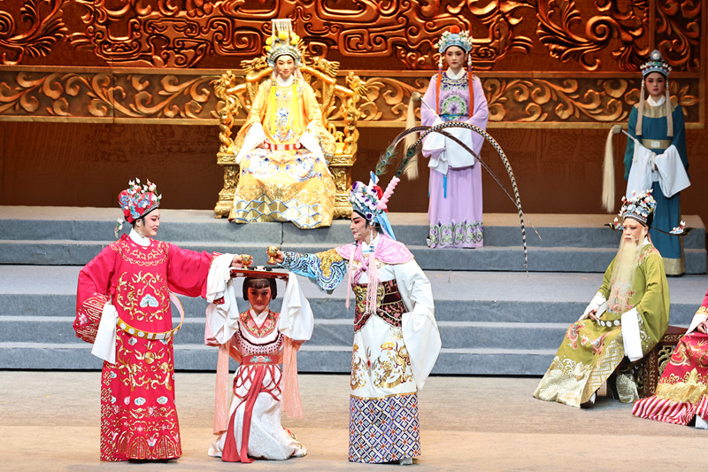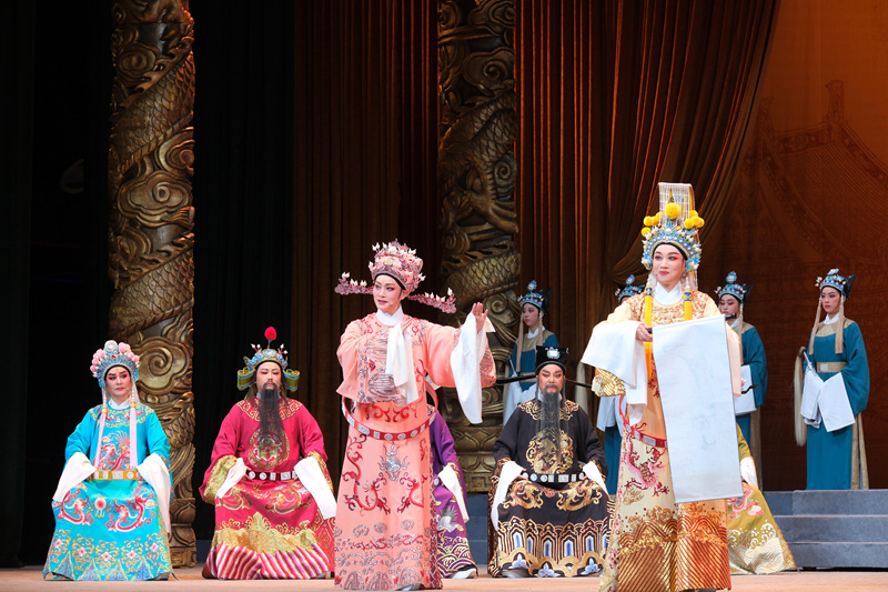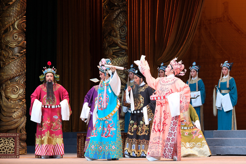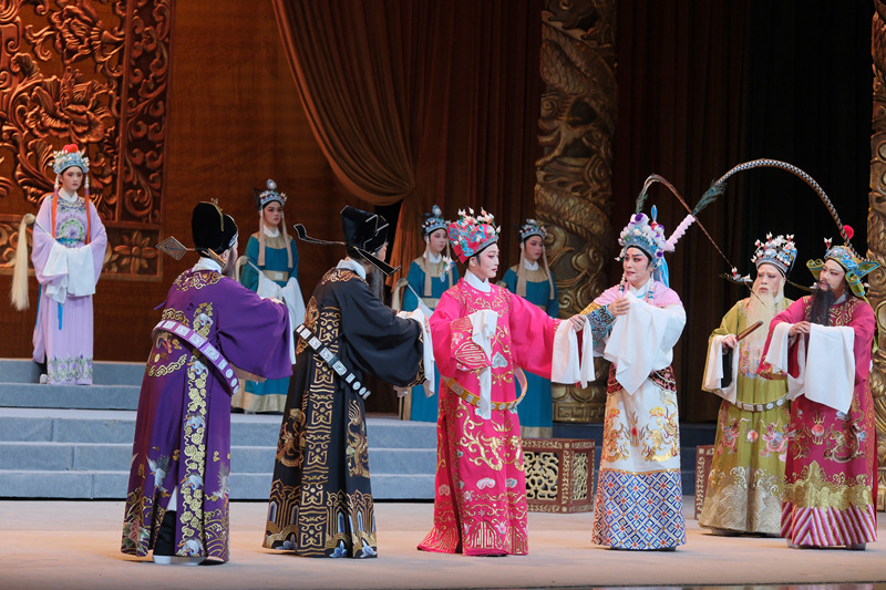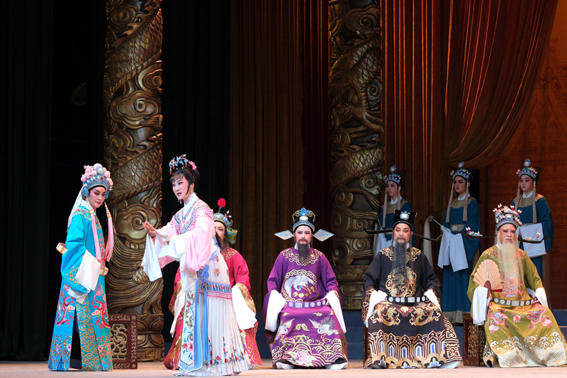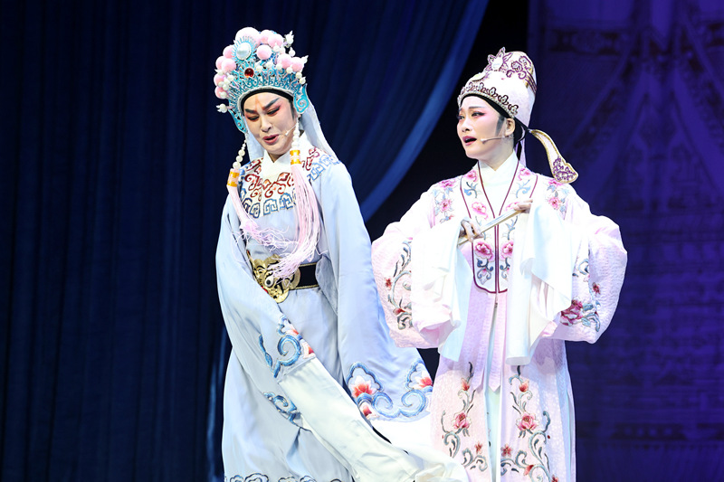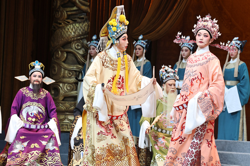 “上林三春好風光,君臣攜手心歡暢,層樓飛閣彩云繞,畫棟雕梁好輝煌……”6月13日,由紹興市越劇團成立以來創(chuàng)排的首部越劇傳統(tǒng)劇目《孟麗君》在更俗劇院上演。該劇講述了孟麗君女扮男裝、考取狀元、官拜丞相,最終與心上人皇甫少華有情人終成眷屬的故事。