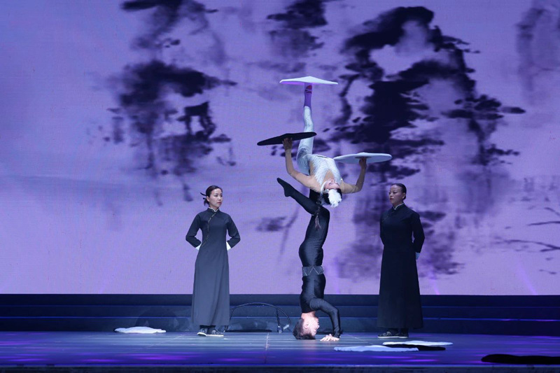 演出以活力舞蹈《綻放》開(kāi)場(chǎng)。國(guó)家級(jí)非遺(木偶戲)代表性傳承人、一級(jí)演員許虹領(lǐng)銜表演木偶短劇《千變?nèi)f化》,精湛技藝贏得觀眾掌聲。阜寧縣雜技團(tuán)呈現(xiàn)《玄機(jī)》,高難度轉(zhuǎn)毯拋接技巧引人注目。