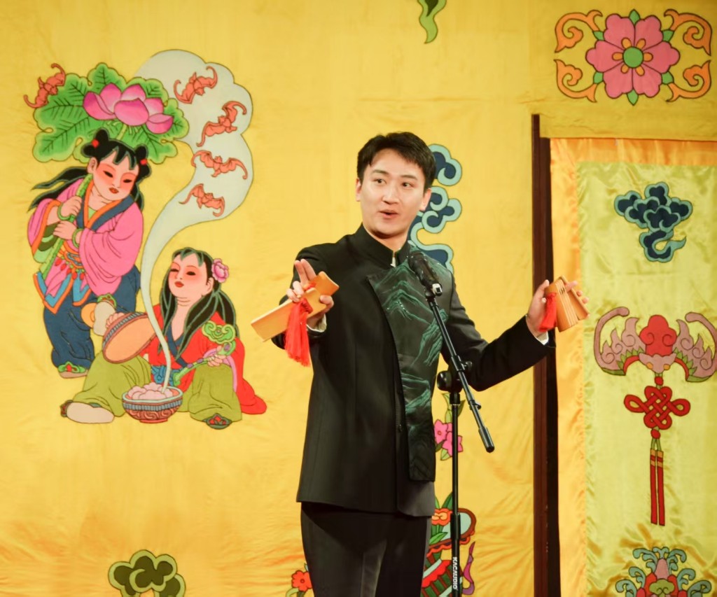 演出在相聲《歡聲笑語》《語言的藝術》中拉開序幕,表演者鴻義和木木以幽默的語言瞬間點燃現(xiàn)場氛圍,展現(xiàn)了相聲藝術“歡聲笑語傳萬家”的獨特魅力。隨后,揚州評話《陳毅過江》登場,表演者陳祝武以地道的揚州方言、精湛的表演技藝,生動再現(xiàn)了陳毅過江的經(jīng)典故事,讓觀眾沉浸式感受揚州評話的韻味;吳佳澎、季逢春帶來的相聲《我把山歌捧出來》,將山歌元素與相聲藝術巧妙融合,呈現(xiàn)別樣藝術風格;傳統(tǒng)評彈開篇《賞中秋》由曹軼、倪晨演繹,婉轉的唱腔、典雅的韻味,帶領現(xiàn)場觀眾領略江南評彈的細膩與唯美。活動尾聲,快板《紅柳樓》表演者孫嘯以明快的節(jié)奏、清晰的口齒,將作品內容精彩呈現(xiàn),更是贏得現(xiàn)場觀眾的陣陣掌聲。