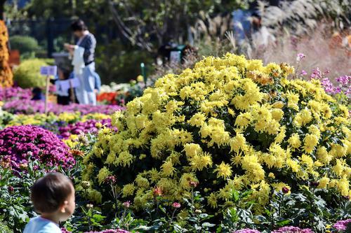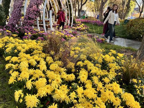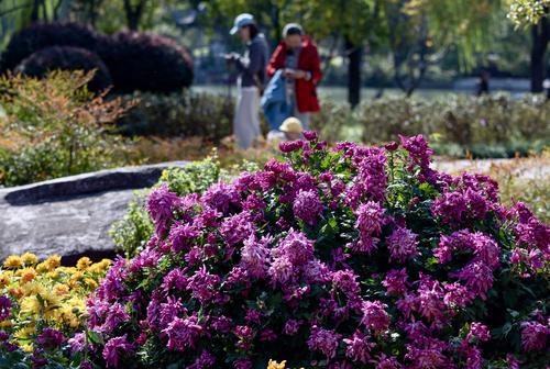 11月6日,記者在文峰公園看到,這里菊香滿徑,2.1萬余盆菊花與假山、亭廊、駁岸相擁,吸引不少市民游客拍照打卡,感受秋日之美。