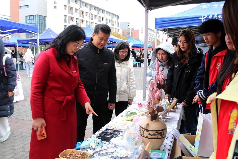 在活動現(xiàn)場,展售區(qū)品類豐富,涵蓋科技制作、學科競賽成果等創(chuàng)新創(chuàng)業(yè)作品,文創(chuàng)設計、手工作品等文化創(chuàng)意產(chǎn)品,以及剪紙、風箏、藍印花布等非遺傳承作品與相關表演,公益服務類項目則涉及教育、環(huán)保、鄉(xiāng)村振興等多個領域。專業(yè)技能展示亮點紛呈,學前一院的扎染、管理學院的咖啡制作與空乘急救服務、智能信息學院的機器人與3D打印、音樂舞蹈學院的AI作曲編創(chuàng)與點唱服務、體育學院的射擊體驗與武術表演,充分展現(xiàn)各專業(yè)特色。